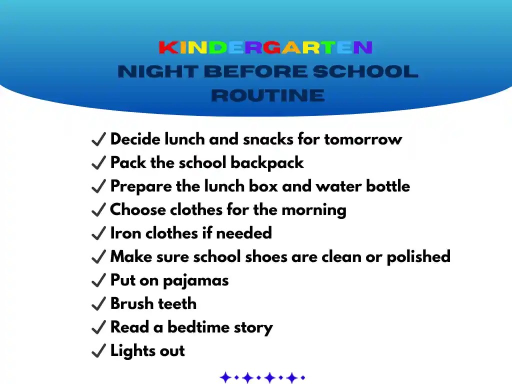 School mornings can feel rushed, especially during the first few weeks of kindergarten. Preparing a few things the night before can make mornings calmer for both children and parents.