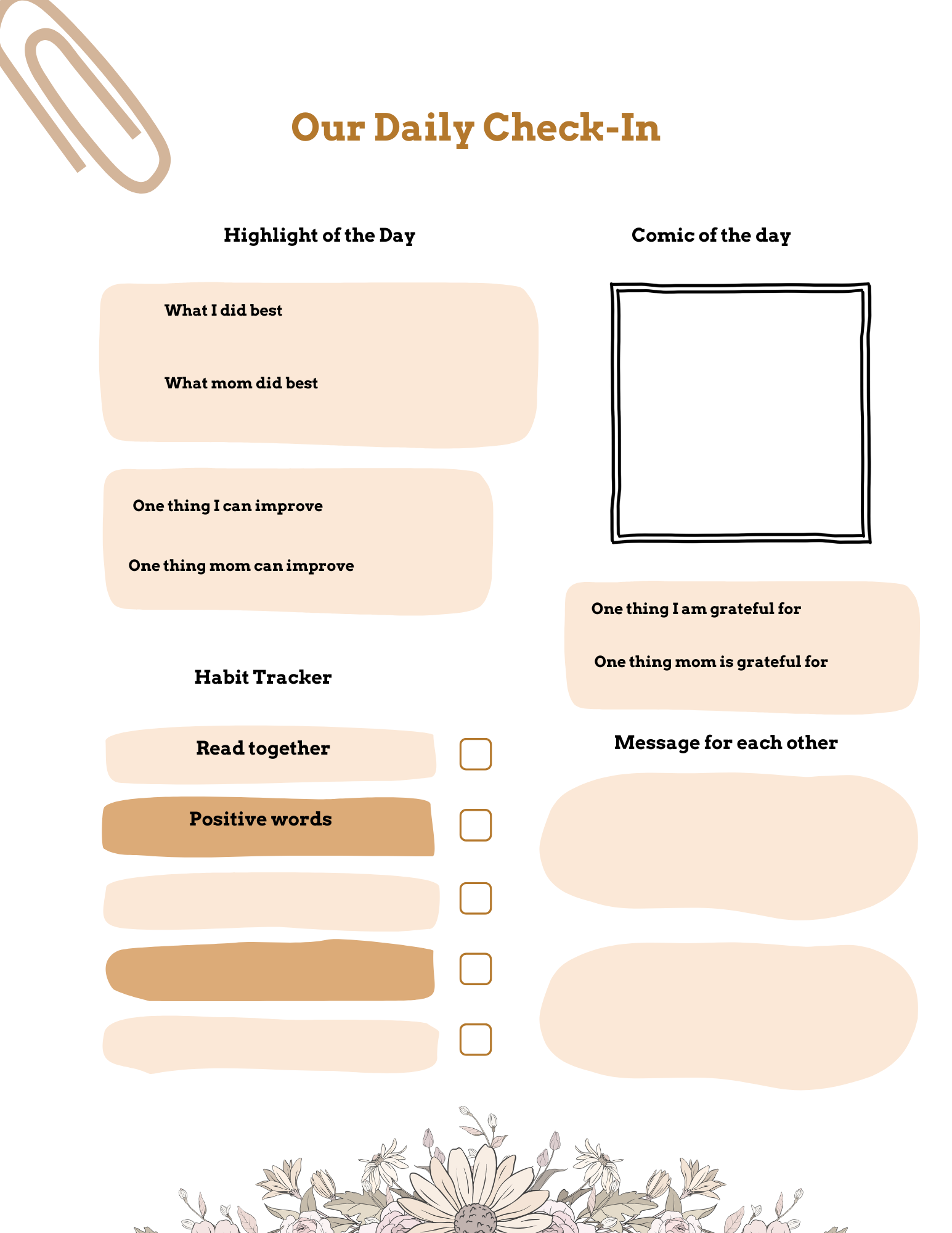 The Parent–Child Daily Check-In is a simple, low-effort tool designed to support emotional connection in everyday life.